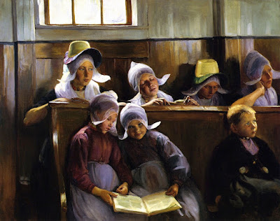 Elizabeth Nourse was born in the village of Mount Healthy, Ohio, near Cincinatti. Elizabeth and her twin sister Adelaide were the youngest of ten. According to the Smithsonian Institute, her father was a successful banker, until the Civil War ruined his business. She and her sisters learned trades to help take care of the family. At fifteen, Elizabeth began study at the McMicken School of Design (now the Art Academy of Cincinnati) under Thomas Noble. Hers was one of the first classes of women permitted to study life drawing. Elizabeth studied seven years there, after which she was offered a teaching position. She declined it to focus solely on her art. She sold her drawings locally, painted murals, and illustrated for magazines.